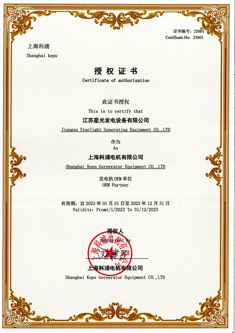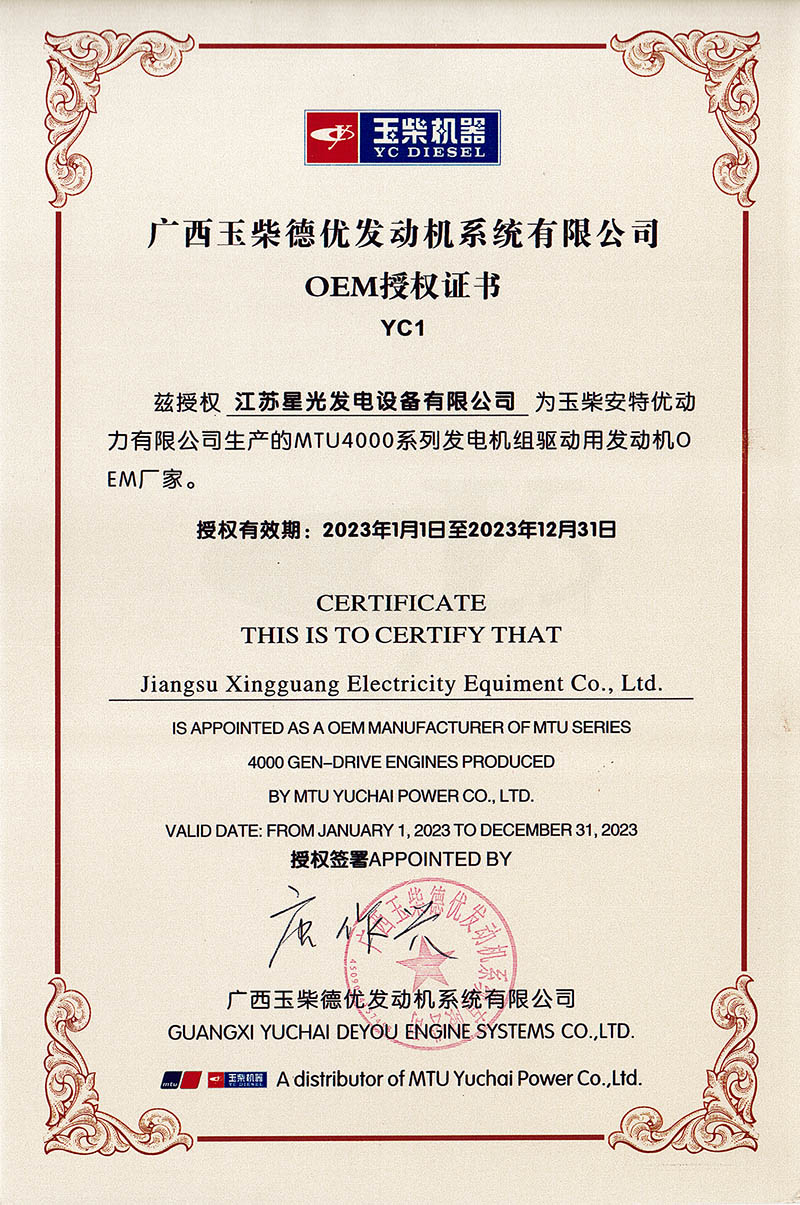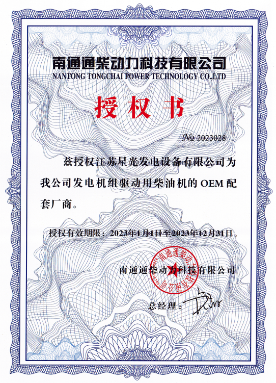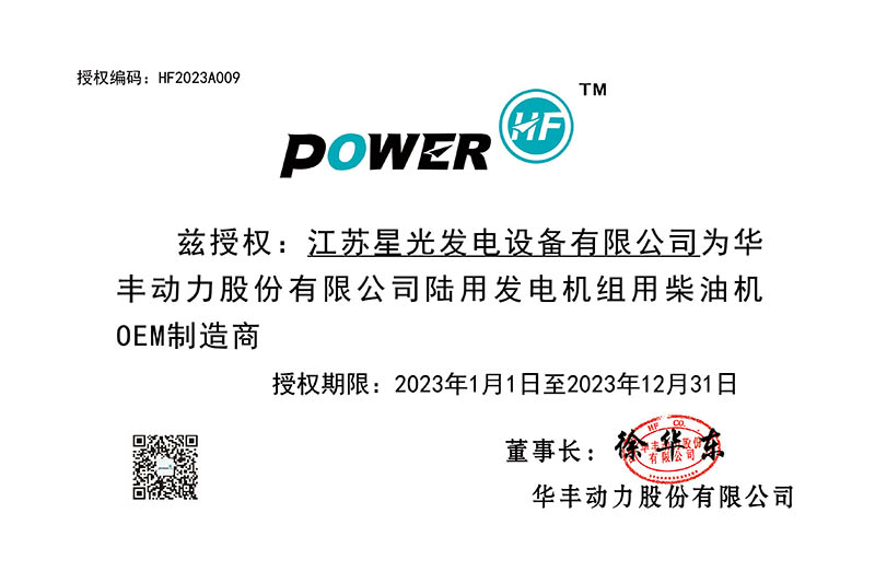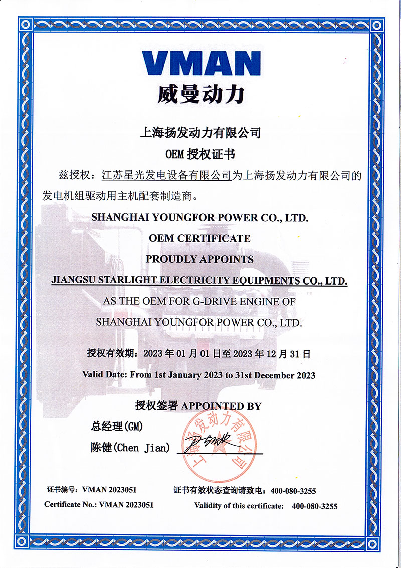 上海孚創(chuàng)動力電氣有限公司OEM授權證書