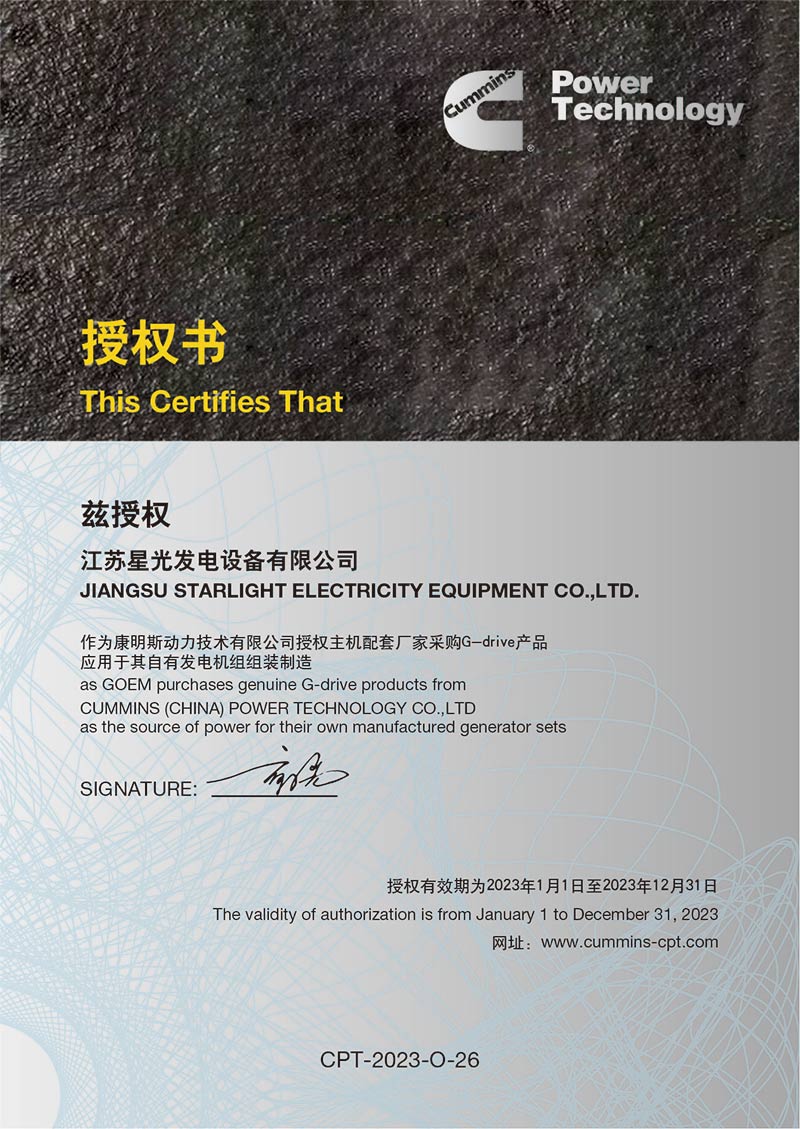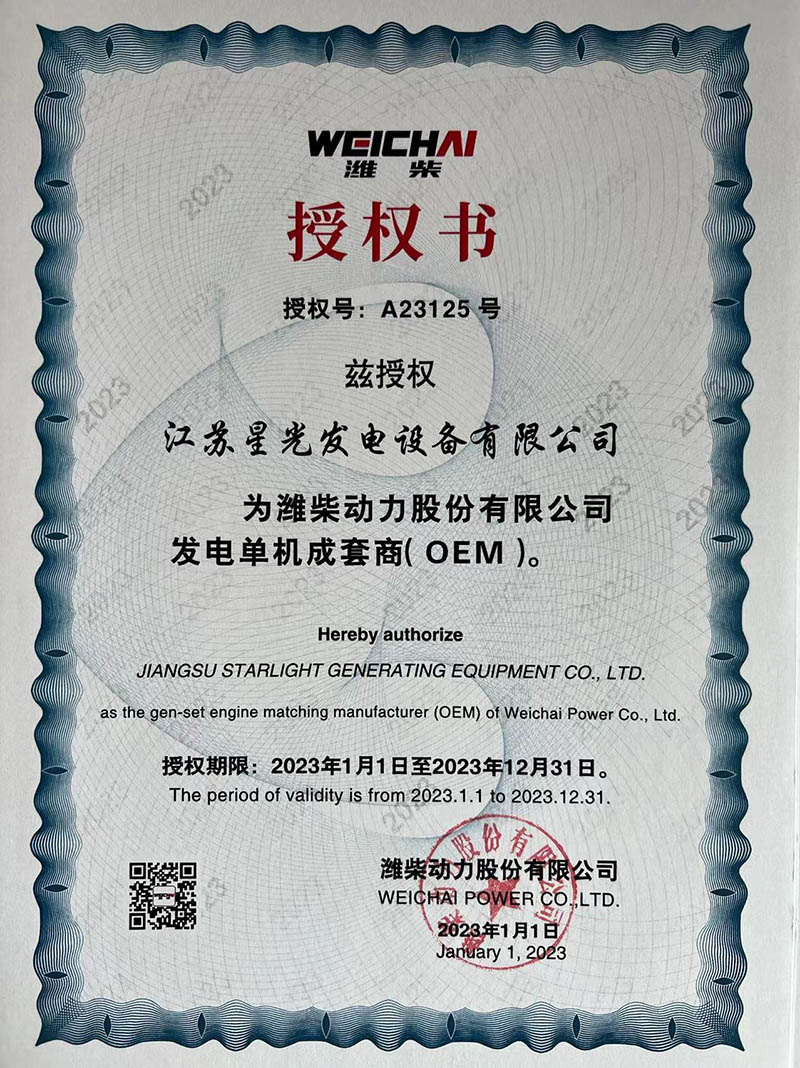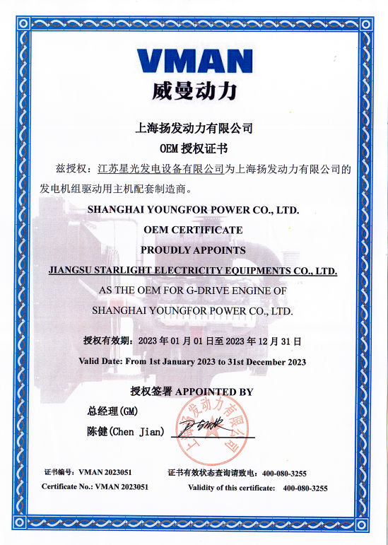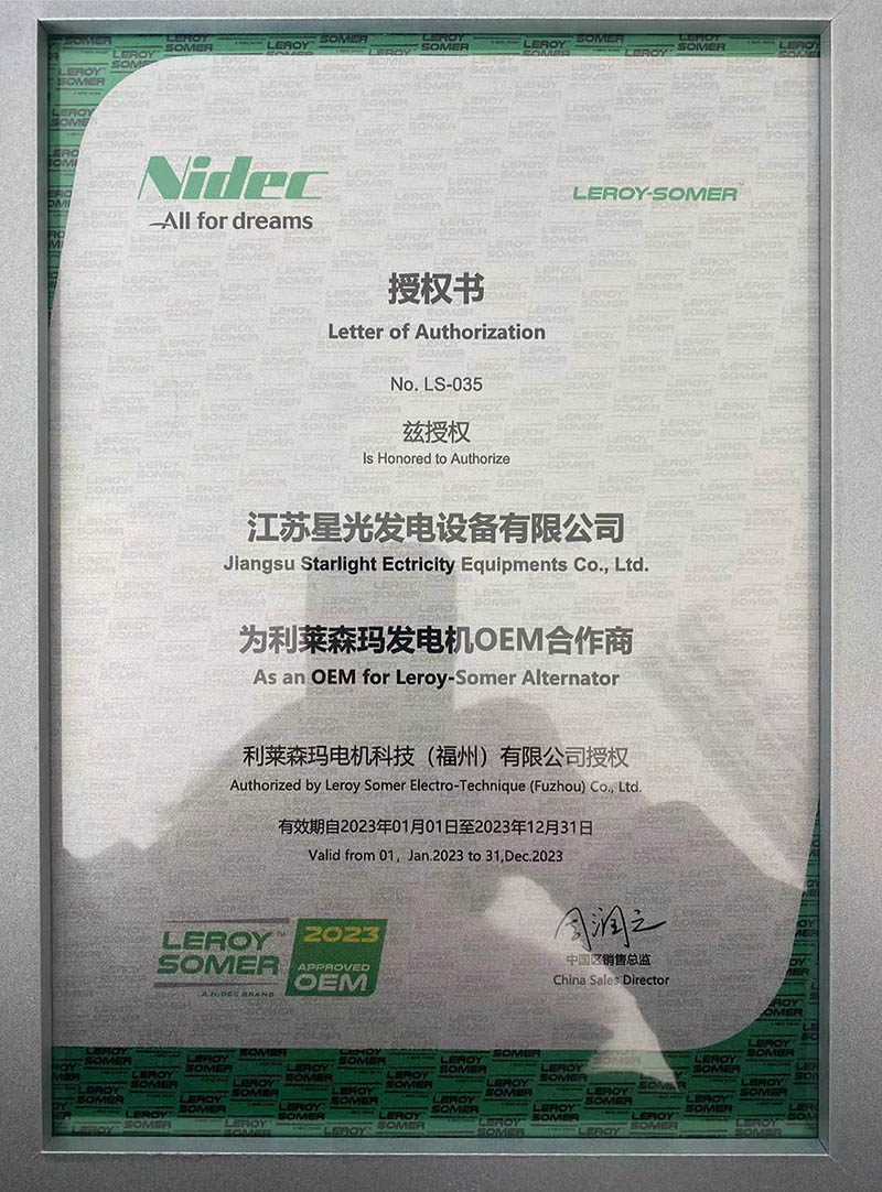 上海孚創(chuàng)動力電氣有限公司OEM授權證書